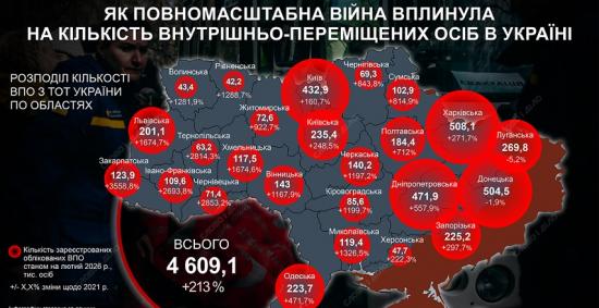 Всего на февраль 2026 года в Украине зарегистрировано больше 4,6 миллионов внутренних переселенцев.