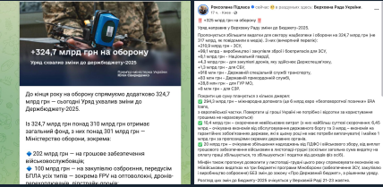 Еще 100 млрд грн - на закупку вооружения, прежде всего БПЛА. 4,3 млрд грн на закупку дронов получит Госспецсвязи.