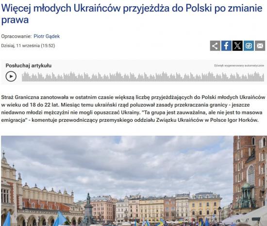 Представитель Бещадского отделения Пограничной службы Польши Петр Закелаж сообщил, что с 28 августа (день, с которого был разрешен выезд молодым парням) по 3 сентября в Подкарпатское воеводство из Украины прибыли 6100 мужчин в возрасте от 18 до 22 лет, а выехали 2000.