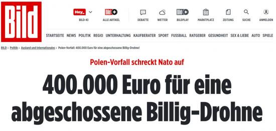 Польша вчера сбивала дешевые российские дроны ракетами, стоимостью 400 тыс. евро каждая, - Bild