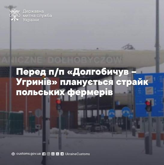 Таможенная служба сообщает, что в пятницу поляки будут блокировать пункт пропуска «Долгобичув-Угринов» во Львовской области с 12:00 до 16:30.