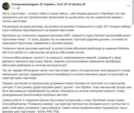Как сообщил главком ВСУ в Фейсбуке, сегодня он провел совещание по вопросам подготовки личного состава.