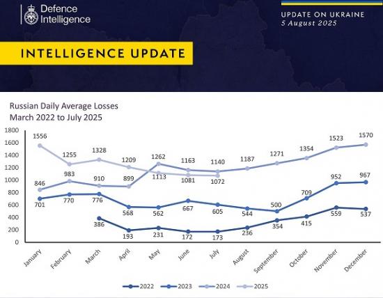 В июле среднесуточные потери составили около 1072 военных, что является минимальным показателем за последние 15 месяцев.