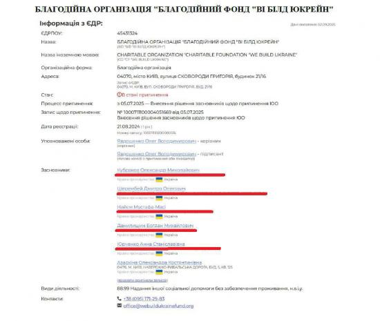 В мае 2024 года Кубракова отправили в оставку, и, вероятно, понимая, что сотни миллионов уплывают, в августе 2024 он вместе с Дмитрием Шерембеем, Богданом Данилишиным, Мустафой Наемом и своей экс-подчинённой Юрченко создал фонд "We build Ukraine".