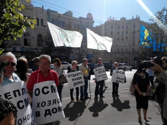Представители харьковских ОСМД пикетируют здание горсовета с требованием к харьковской городской власти выполнять закон Украины о создании ОСМД.