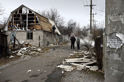 В результате артиллерийского обстрела Горловки, Донецкая область один из снарядов попал в жилой дом.