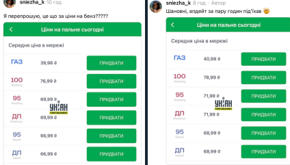 По словам водителей, всего за несколько часов цены выросли примерно на 2 гривны за литр.