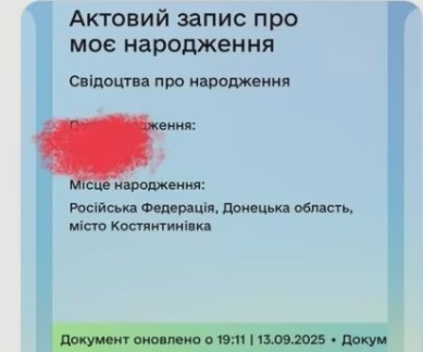 Приложение портала государственных услуг «Дія» отнесло город Константиновка Донецкой области к Российской Федерации