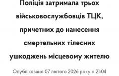 Полиция Днепропетровской области сообщила о задержании трех военнослужащих ТЦК, которые до смерти избили гражданского
