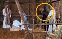 Преступник притворился восковой фигурой и спрятался в рождественском вертепе, но его заметил мэр города