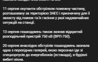 "Энергоатом" сообщает о новых повреждениях на Запорожской атомной электростанции (АЭС).