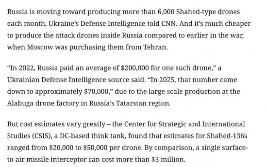 При этом CNN указывает, что оценки стоимости сильно различаются - американский аналитический центр CSIS считает, что стоимость Shahed-136 варьируются от 20 000 до 50 000 долларов за беспилотник.