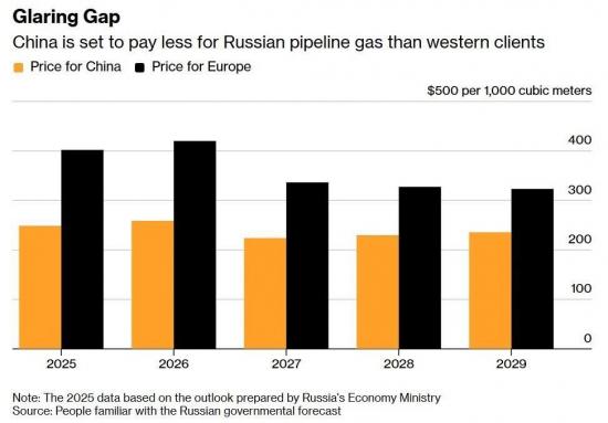 В прошлом году Россия продавала свой природный газ Китаю по средней цене 248,7 доллара за 1000 кубометров, что также более чем на 38% ниже средней цены по Европе.