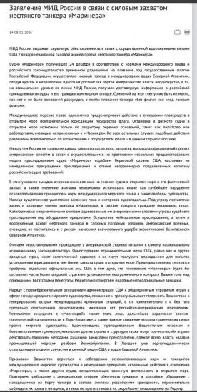 Россия заявила об угрозе ухудшения отношений с США из-за захвата танкеров, а также прогнозирует, что подобных инцидентов может стать больше