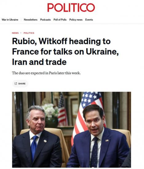 Рубио и Уиткофф посетят Париж для переговоров по Украине, - Politico