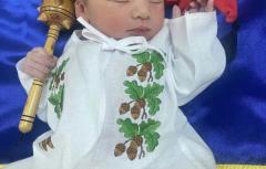 В свой день рождения малыш получил первую вышиванку и фотографию на фоне украинского флага с крошечной булавой в руке. Об этом рассказали на Facebook-странице Волынского областного медобъединения защиты материнства и детства.