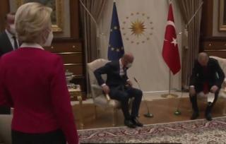 Глава Еврокомиссии Урсула фон дер Ляйен на переговорах с Реджепом Эрдоганом и главой Евросовета Шарлем Мишелем попала в неловкую ситуацию.