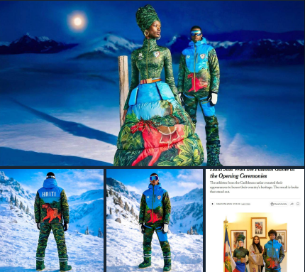 СМИ разных стран обсуждают дизайн итальянско-гаитянского модельера Стеллы Джин, которая украсила зимние костюмы олимпийцев из Гаити рисунками ручной работы.