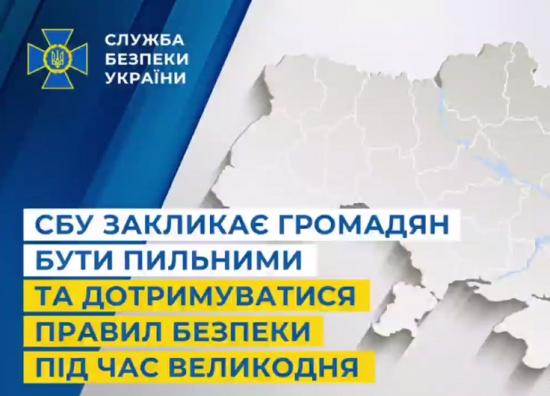Служба безопасности Украины фиксирует регулярные попытки врага дестабилизировать ситуацию внутри Украины, в частности накануне и во время больших религиозных праздников, таких как Пасха, и призывает украинцев быть бдительными и соблюдать правила безопасности.