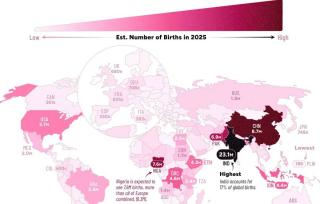 Мировой рейтинг стран по количеству рождений в 2025 году