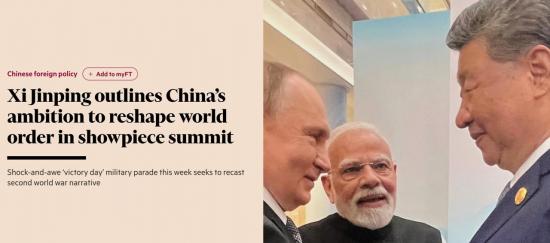 По оценке FT, Пекин использует домашний саммит ШОС как возможность продемонстрировать себя в качестве опоры мирового управления в противовес администрации Трампа, чьи пошлины ударили как по друзьям, так и по врагам Китая в регионе.