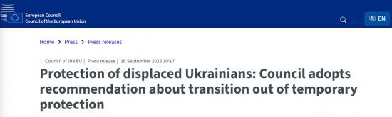 "Сегодня Совет согласовал общие рамки для перемещенных украинцев, чтобы обеспечить устойчивое возвращение и реинтеграцию в Украину, когда позволят условия, а также постепенный переход к другим статусам проживания для тех, кто на них имеет право", - сообщает пресс-служба Совета ЕС.