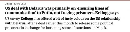 Спецпредставитель Келлогг подтвердил, что США через Лукашенко ведут переговоры с Путиным, и снятие санкций с Беларуси также рассматривалось в этом ключе, а не для освобождения политических заключенных, - The Guardian