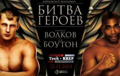 12 декабря в Санкт-Петербурге, в рамках турнира Tech-KREP FC «Битва Героев», российский боец смешанных единоборств (ММА) Александр Волков проведет поединок против американца Роя Боутона.