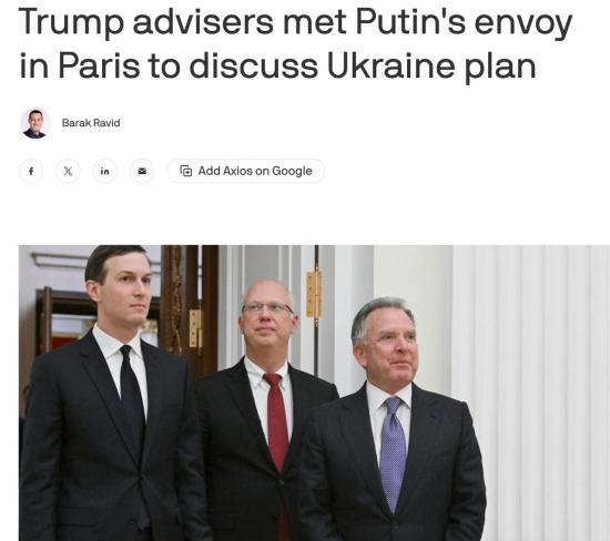 Издание напоминает, что встреча с посланником Путина состоялась после двухдневных переговоров Уиткоффа и Кушнера с высокопоставленными украинскими и европейскими чиновниками.