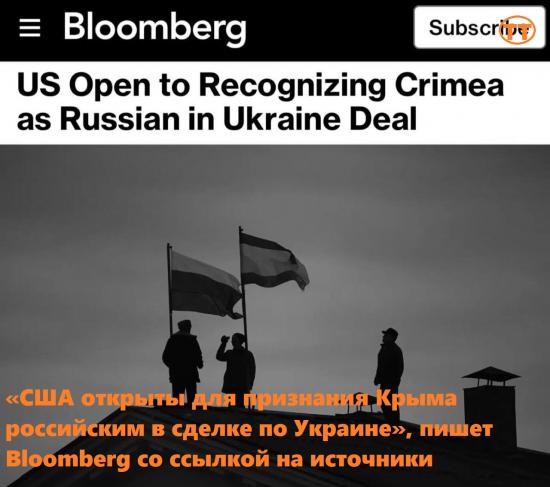 «США открыты для признания Крыма российским в сделке по Украине», пишет Bloomberg со ссылкой на источники