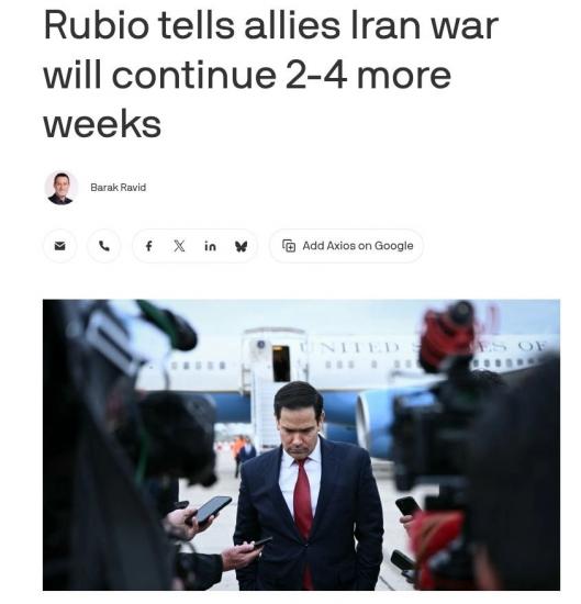США ожидают, что война с Ираном продлится еще от двух до четырех недель