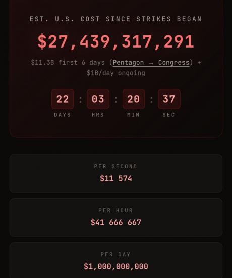 Расчет основан на данных Пентагона: первые шесть дней конфликта обошлись в 11,3 млрд долларов, а каждый следующий день стоит около 1 млрд.