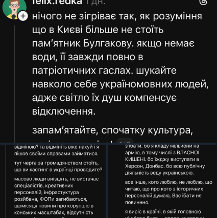 В ответ на этот пост Редька получил угрозы и обвинения в «малороссийскости», на которые также отреагировал.