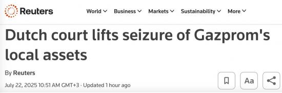 Суд в Гааге снял арест с активов «Газпрома» в Нидерландах, - Reuters