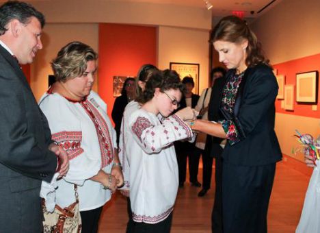«В Нью-Йорке Марина подарила куклы-мотанки маленьким украинцам, которые были усыновлены американскими семьями», - говорится в сообщении.