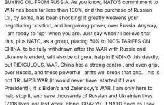 Трамп вновь заявил, что готов ввести серьезные санкции против РФ, если все страны НАТО сделают то же самое и когда они перестанут покупать нефть у России