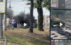 В Киеве на Харьковском шоссе крупная авария с горящим автомобилем