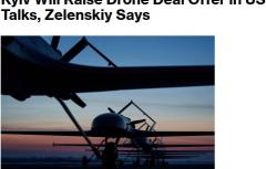 Как пишет Bloomberg со ссылкой на заявление Зеленского, Киев намерен расширить предложение по сделке с беспилотниками на переговорах с США.