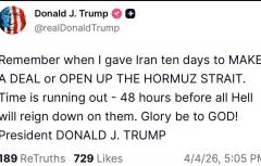 «Помните, я дал Ирану десять дней на то, чтобы заключить сделку или открыть Ормузский пролив .