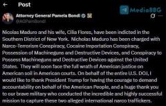 Генеральный прокурор США Памела Бонди, заявила, что Мадуро и его жену будут судить в Америке