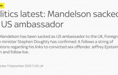 Британия уволила своего посла в США Питера Мандельсона из-за связи с сексуальным преступником Эпштейном, - Sky News