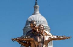 В Вашингтоне на Национальной аллее установили статую Трампа и Эпштейна в сцене из фильма «Титаник»