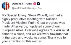 "Насколько я понимаю, у них (Уиткоффа и Кушнера - Ред.) вчера была очень хорошая встреча с президентом Путиным .