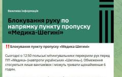По заявлению службы, поляки перекрыли пункт пропуска "Медика-Шегини".