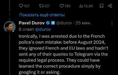«Меня арестовали из-за ошибки самой французской полиции: до августа 2024 года они игнорировали французские и европейские законы и не направляли запросы в Telegram по требуемой юридической процедуре .