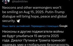 "Неоконсерваторы и другие подстрекатели войны не будут улыбаться 15 августа 2025 года .