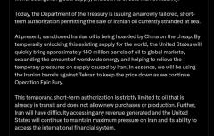 Минфин США снял санкции с иранской нефти, которая уже находится в море