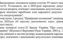 В принятом сегодня проекте госбюджета-2026 есть пункт о том, чтобы «народному депутату Украины возмещаются расходы связанные с исполнением депутатских полномочий, в размере трех месячных заработных плат народного депутата Украины,...