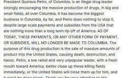 Помимо разгорающего конфликта с главой Венесуэлы Мадуро, он в жесткой форме обвинил президента Колумбии в крышевании наркоторговли и объявил об остановке выплат субсидий Колумбии со стороны США.