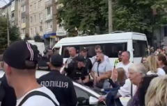 В Виннице толпа людей окружила полицейскую машину и потребовала освободить сидящего там мужчину